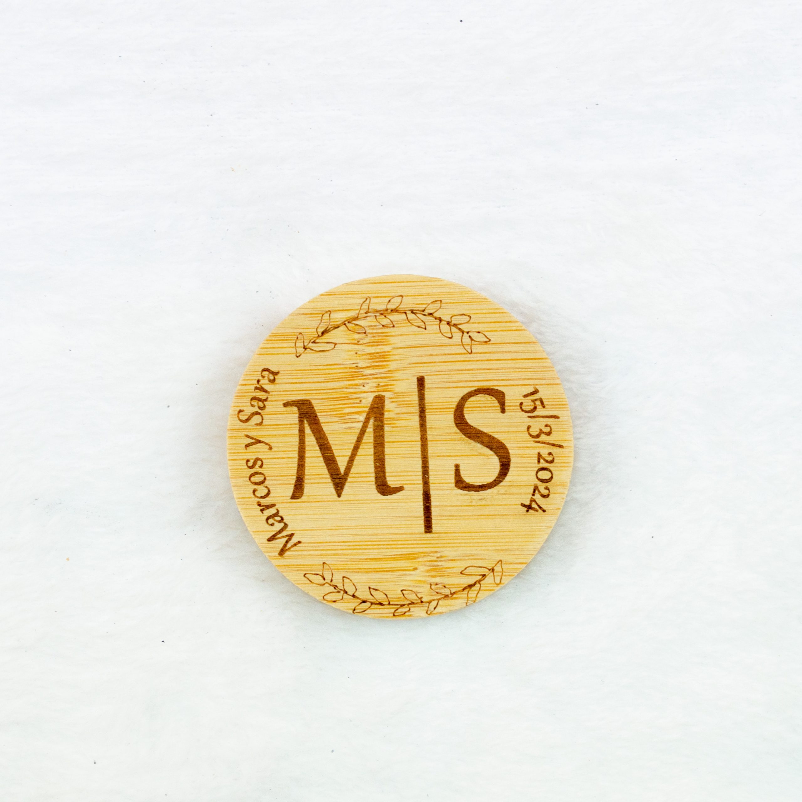 Un detalle elegante y práctico para recordar tu boda. Hecho con madera de alta calidad y acero resistente. Incluye un grabado láser personalizado con nombres, fecha o un mensaje especial.
