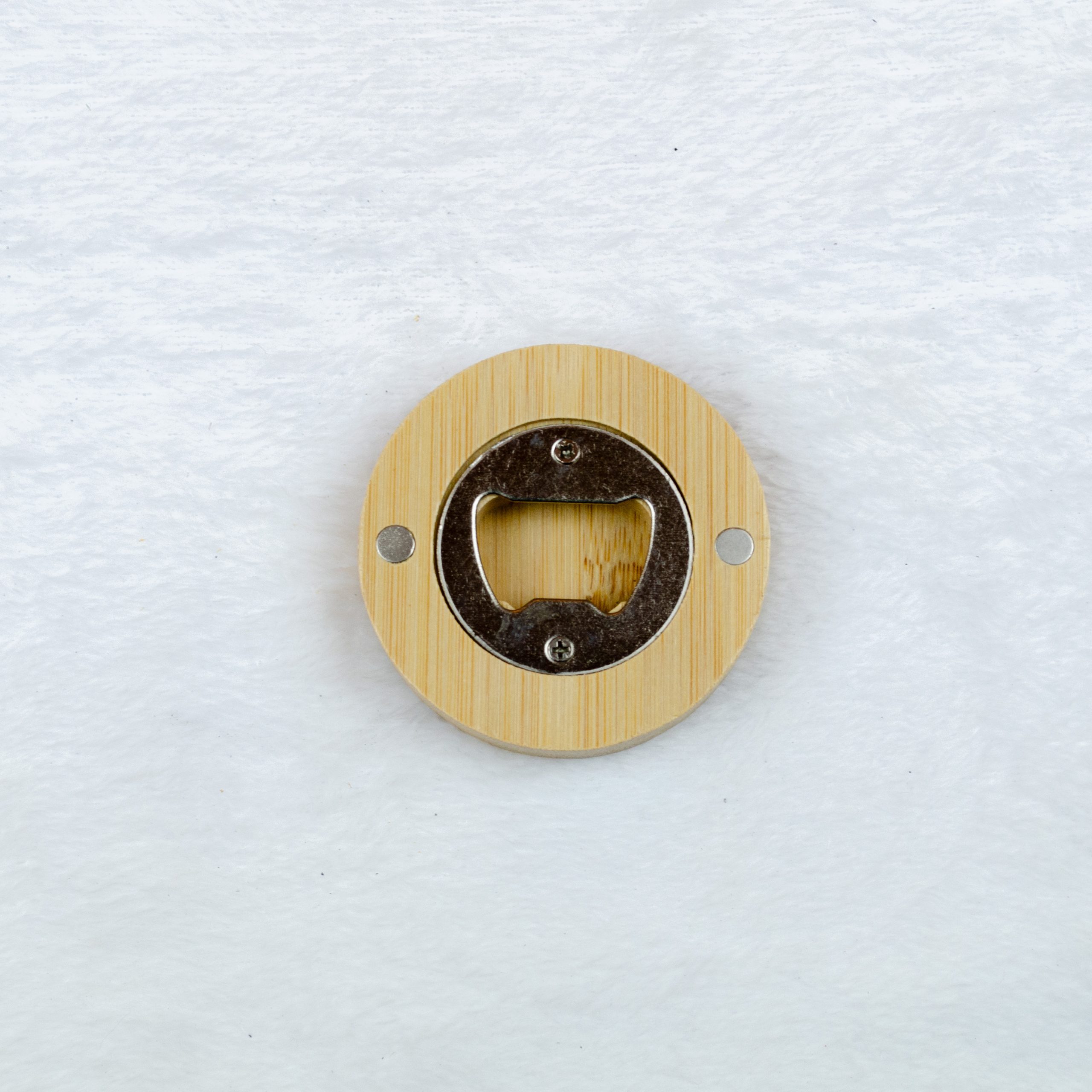 Sorprende a tus invitados con un abridor con imán de botellas de madera personalizado.